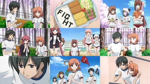 お弁当「あーん」イベント・・・あぁっ!!!さすがにこれはこそばゆ過ぎて、観てて部屋中転がり回った(^_^; 小恋のお弁当のおかずは玉子焼きにアスパラのベーコン巻きにクリームコロッケ(推測)にサラダか・・・。実は簡単な物ばかりだなw つーか自然に美少女がわんさと集まってくるこの義之のハーレム体質は羨ましいと言うか・・・羨ましいと言うかw 100m走で1位のフラッグを持つ小恋の元へ全力疾走を誓う義之・・・やっと格好良い所見せられるのかな、と思ったら、杉並開発のロケットシューズで昼間の星になりましたとさ☆