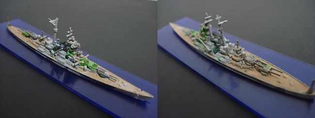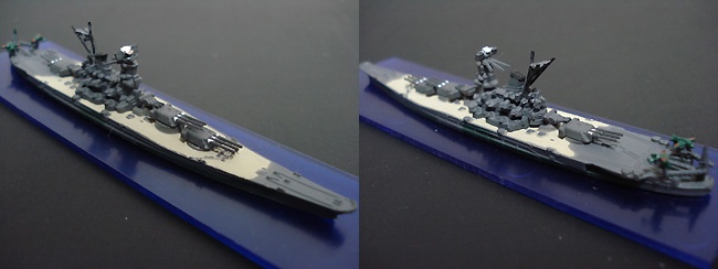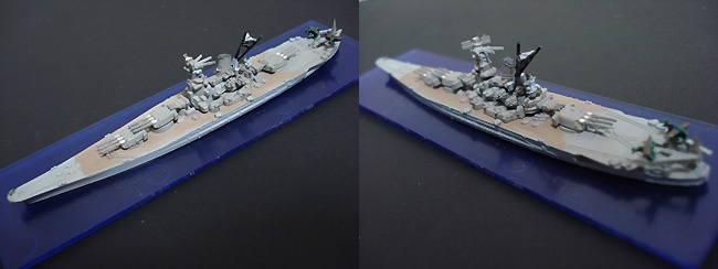 キットとしての精度は正直いまひとつ・・・やっぱ1/2400というサイズに無理があったのか。それに『大和』と金型を同じくするためか、厳密な『大和』との差異(高角砲とかね)が再現されていないのが残念。