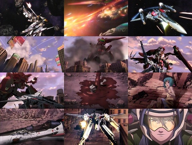 とまぁ、「主人公は飛ぶ事が好き」「艦内に侵入した敵から女の子を救う」「スカル小隊リーダー」「私の歌を聴けーっ」「バーミリオン小隊、全滅!」等々、マクロス好きがニヤニヤして楽しめる要素をふんだんに練り込んだ素晴らしき第1話でした。このクオリティを2話以降も続けられたら神アニメ確定ですが・・・何しろマクロスには“作画崩壊”の悪夢が付き纏うので(^_^;