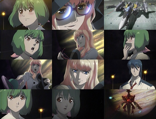 アルトを探していたシェリルは、街で偶然ランカと知り合います。つーか大ファンならこの程度の変装は見抜けよランカ・・・(^_^;