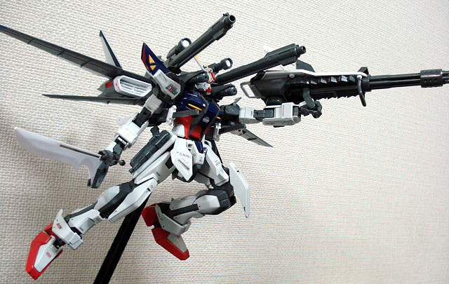 武装パターンいろいろ。当然IWSPは取り外し可能。ポリキャップを多用しているのでポージングもかなりのバリエーションが楽しめます。やっぱガンプラの最高峰・MGは一味違いますね〜(製作時間もなw)。