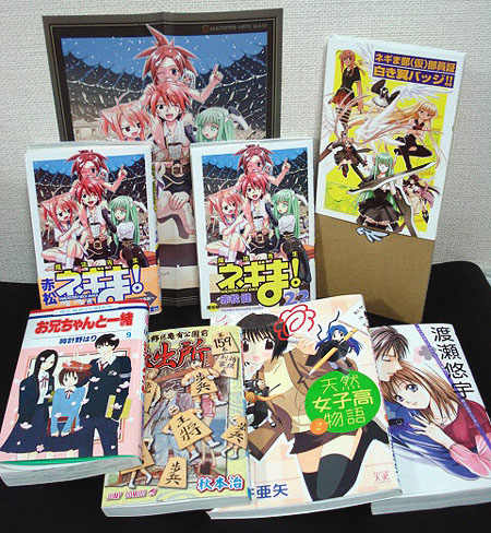 ネギま!以外にも、ここ最近買ったコミックもざっと並べてみました。うーん、少女漫画から4コマ、こち亀までw 相変わらず何でも読んでます(あっ!『ひとひら』の5巻写すの忘れてた・・・)。
