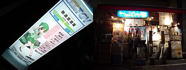 同ビル4Fには、噂の鉄道居酒屋『Little TGV』も入っています。もう1人の友人(つーか一緒に北海道一周や広島・呉旅行に行った雪凪氏なんですが)は隠れ鉄ヲタなので(何を隠そうワタシも20年前までは鉄ヲタ)、今度また一緒に来ようかと♪ そして最後はいつものじゃんがらで締め。じゃんがら初体験の2人も「うめぇっ!」と完食。 こうして3時間弱と短い時間でアキバの最も濃いエッセンスを堪能してもらった“アキバマスター・Mc.プロデュースによるメイドさんと過ごすゆうべ”ツアーは無事終幕。喜んでもらえたようでプランナーとしては嬉しい限りです♪