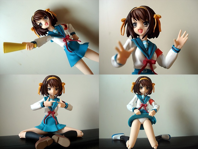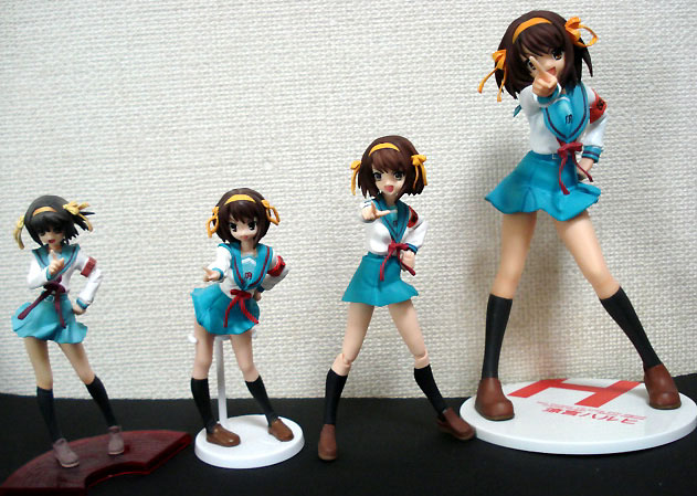 右からマックスファクトリー版ハルヒ、figmaハルヒ、HIGFハルヒ、ツガノガク版コミック付属ハルヒ(しまった!通報しますたAAと大小の並び逆だった)。 やはり完成度という点ではマックスファクトリー版が神の領域。コストパフォーマンスと遊べるという点ではfigmaに軍配。HIGFは・・・引き立て役w ツガノガク版はまた違う趣きがあるかな、と(^_^;