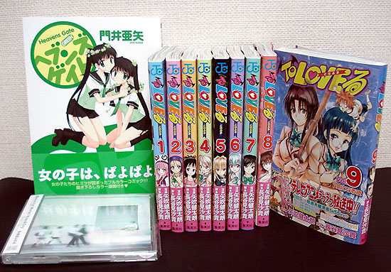 5/2発売の最新刊(9巻)に合わせて、『ToLOVEる』全巻購入です♪( ̄▽ ̄)ノ パラパラとめくってみましたが・・・おぉっ!!!ちゃんとあるべき所に突起物がある♥♥ 素晴らしき哉! ちなみにジャンプ系のコミックはこち亀を除けば『I”s』以来になるかなぁ・・・うーん、我ながら趣向が分かり易いw ついでに門井亜矢さんのコミック『ヘブンズゲイトGREEN』、それに新劇場版エヴァの主題歌CD(昨年夏発売)も買って来てたり。ちなみにこれ全部、アニメイトのポイント交換でタダで入手しました(w
