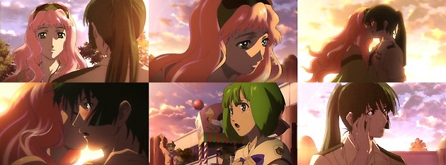 今日一日付き合ってくれたお礼、と去り際にアルトの頬にキスするシェリル。偶然その光景を見て呆然とするランカ・・・2人が歌に恋にライバルとなる布石が着々と打たれていますね。