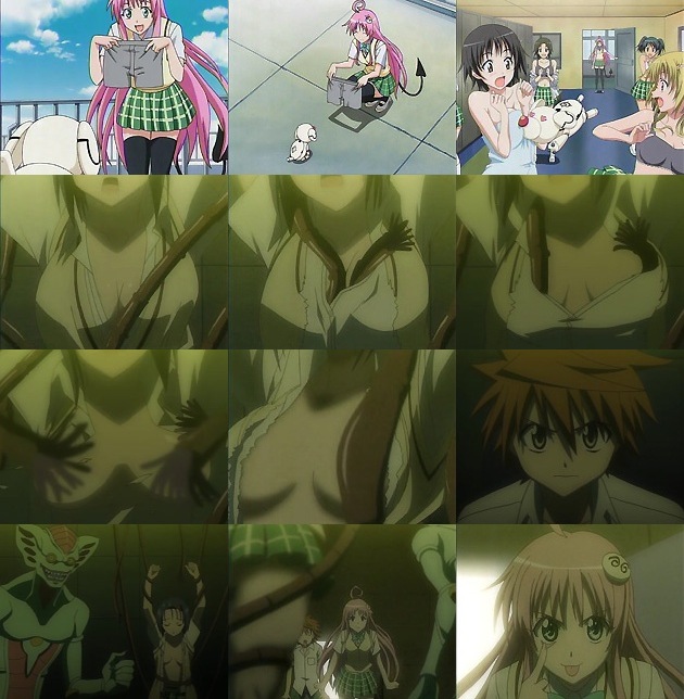 ララはなぜリトのパンツを持ち歩いているですか?(^-^; そしてこの学校のその他女子の下着の色気の無さは異常だ(;´д`) 一方春菜の触手責めはますますエスカレート♪ 出来れば意識のあるところで責めまくって欲しかったんですが。 春菜の危機にようやく駆け付けるリトとララ。ちぇっ、もうちょっと脱がしてから来れば良いものを(コラっ