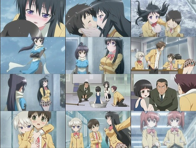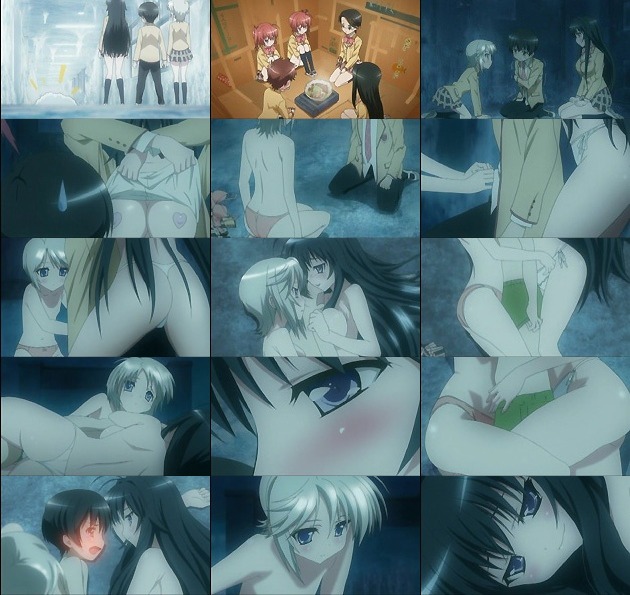 寝起きを襲うだけでは飽き足らず、通学路で片乳出して淫行に及ぼうとするちずるさん・・・年中発情期過ぎw そこに再び邪魔が・・・。現れたのは、ちずるの母が監視のために遣わした雪花。見た目通り忍びの者かな。人間との恋愛を厳しく戒める雪花は2人の愛が如何ほどかテストを始め、学校を大雪で外界から遮断し、遭難状況を作り上げます。 不憫なのは巻き込まれた学校の面々。凍傷の治療のためにガマの油を搾り取られそうになった澪は、カエルなので冬眠しちゃうし、他にも妖怪連中の多くは使い物にならず・・・ そんな中、サヴァイヴァルに強さを発揮したのが七々尾姉妹。新聞紙を体に巻いて暖を取る方法や、段ボールハウスの作成など、実生活での経験を活かしまくりw