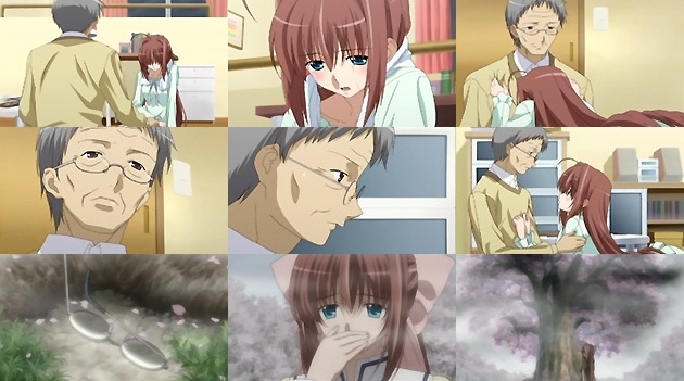 ・・・別にバックから突かれている訳ではありません(最低のコメントだ)。 思い悩む音姫は義之と逢うのが辛くなり、避けるようになります。一方義之は音姫の悩みを分かち合いたくて、そんな音姫を必死に追い・・・。遂にプッツン切れてしまった音姫は(何十年前の流行語使ってんだ俺w)義之に「私のために何でも出来るんだったら1人にして!!!」と激しく憤ってしまいます。 自己嫌悪に陥った音姫を心配した純一爺さんは、全ての事情を音姫から聴くのでした。