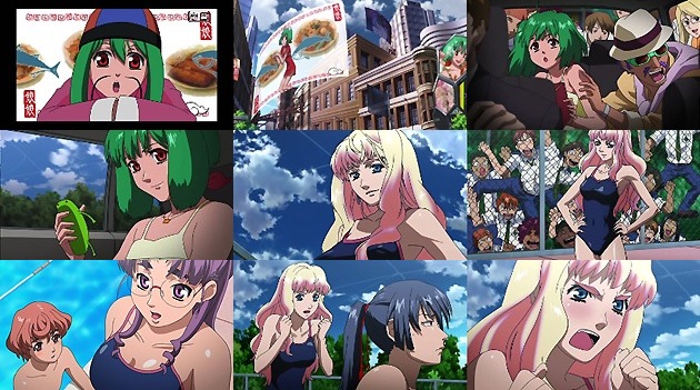 映画のスマッシュヒットで一躍時の人となったランカ。殆ど学校にも行けず、慌しい日々を送ります。 一方、ランカに人気を食われた訳ではないと思うけど(ファン層が違うと思うんで)、ちょくちょく学園に顔を出すようになったシェリル。これはランカがいない内に少しでもアルトとの距離を縮めておこうという計算の上か?何て恐ろしい娘・・・。 どうでもいいけど、ナナセの胸はルカの顔よりデカいのか!?(遠近法、遠近法!)
