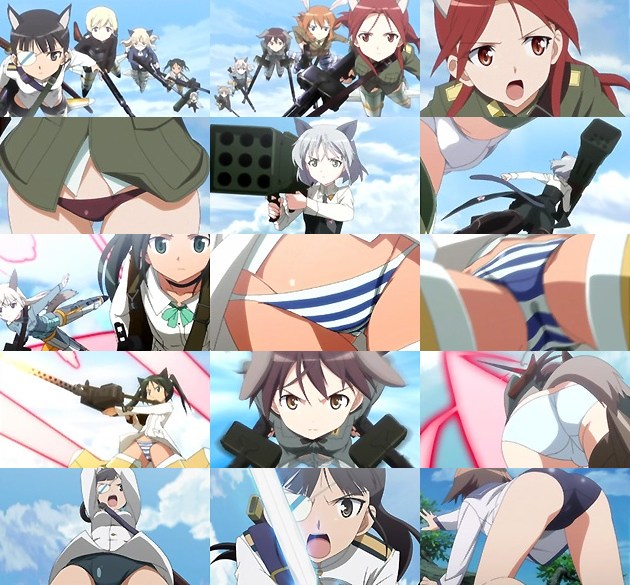アバンのハリケーン戦闘機にも(;゜∀゜)=3 ウホッでしたが、開始早々のこの空戦描写には、いろんな意味で目が釘付けでした! それぞれ武装が違う少女たち(ちゃんとそれぞれの武器の発射音が違っているのに気付きましたか?)がフォーメーションを組んで敵に当たって行く流れ、そしてこれでもかと動きまくる動画。 そして何より、おまいら全員なぜスカート穿かずにパンツ全開なんだwwwww 素晴らし過ぎるぞこの設定♥