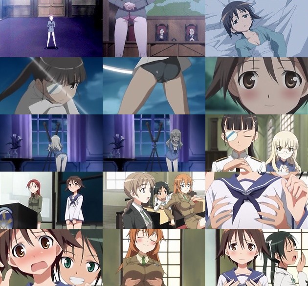初っ端のシーンで早速盛大に吹くwwwww どんなに真面目な会議でも、パンツ全開(誰がなんと言ってもアレはパンツだw)で仁王立ちされてちゃ説得力皆無ってもんです!(>ヮ<)ノ 芳佳、仰向けに寝ていても谷間が出来るってのはそこそこ大きいと思うんだけど如何に。 坂本少佐の朝錬に立ち会う芳佳と、それをパンツ全開でスネークするペリーヌw ペリーヌは普段黒ストッキング穿いてるので、生パンは貴重かも。 自己紹介の後に有志による胸囲測定♪さすが女子高だ。結果は“残念賞”。うーん、冒頭のシーンでそこそこあるようだったんだけど。ウィッチーズ隊の巨乳TOPは「グラマラス・シャーリー」ことシャーロットですか。さすがアメリカ娘。彼女の使用機材はP-51Dムスタングになってるけど、その迫力のボディならば重戦闘機のP-47Dサンダーボルトの方が向いてるかも。
