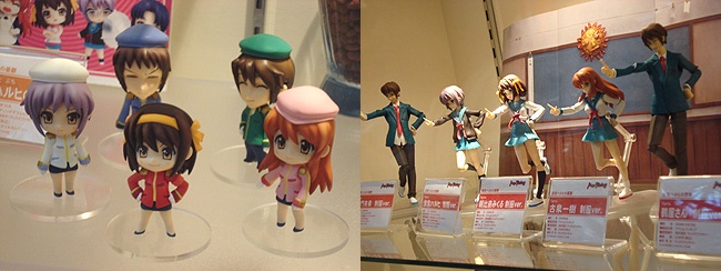 さて、続いては版権キャラもの行ってみましょうか。 まずはまだまだワタシの中でブームの冷め止まない涼宮ハルヒシリーズ。11月発売の上段のハルヒはワタシも既に予約済み!ちなみに一番右の口が開いているのがキャラアニ限定版です。 左下のハルヒは、らき☆すたに登場した時のですな(^-^; 長門の胸像はなかなか雰囲気出てます。つーか持ってる本はちゃんとアニメ版で読んでた本ですねw 朝倉さん・・・このご時勢ナイフはヤバいです(;´д`)