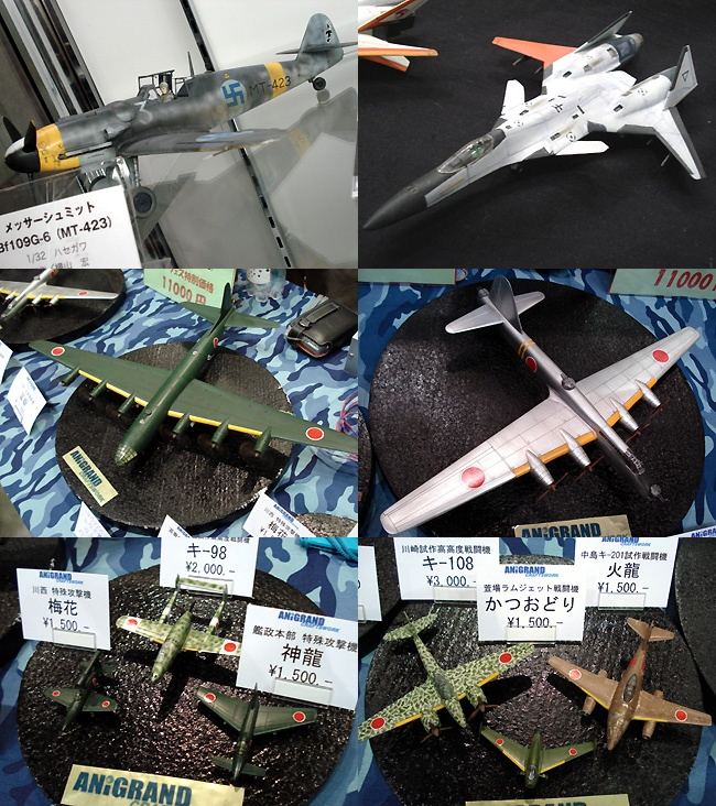 ヒコーキ。メッサーシュミットBf109のG−6タイプは、スト魔女で言うとエーリカ・ハルトマンたんの愛機なのです♪(この時期はどうしてもそっちに結び付けちゃうなぁw) エースコンバットゼロに登場したモルガンもキット化されてますね。戦略レーザー&散弾ミサイルを搭載しているこの最強機は、ミッションでどうしてもクリア出来ない時にワタシもついつい頼ってしまいます(^_^; 『富嶽』に『キ−91』かぁ・・・。それぞれ海軍と陸軍が構想だけした日本の超重爆ですな。勿論そんなの作れるだけの技術力も国力も無かった訳ですが( ´Д⊂ヽ こちらのサークルさんは他にも幻の名機を幾つか展示されてました。