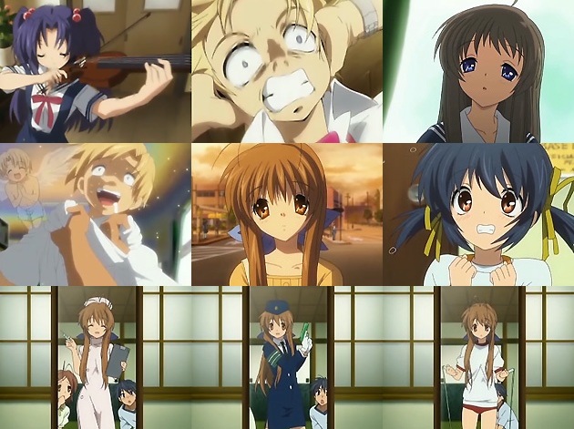 どんな服装で会おうか前日の夜からコスプレショー開催の古河家。早苗さんだけでなく、後ろの朋也&渚の表情にも注目w