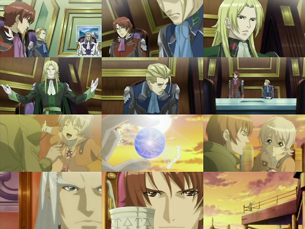 現タイタニアの藩王・アジュマーンは側近のオブノールに四公爵で誰が次期藩王に相応しいか訊ねる、という形で視聴者に四人の人となりを教示します。うん、親切な展開だw