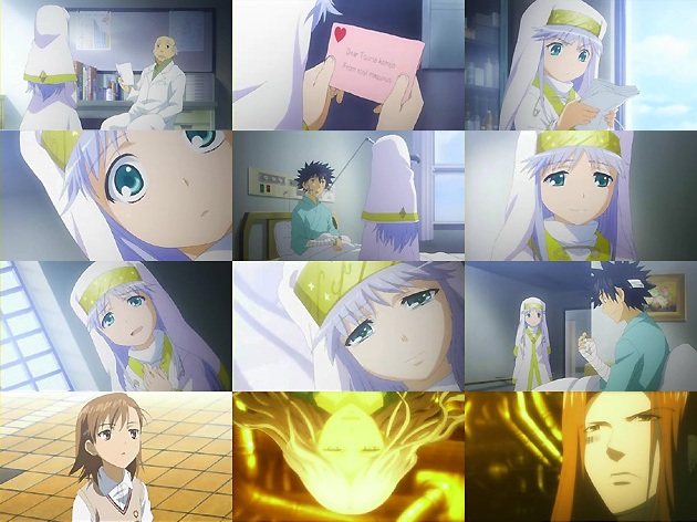 で、ようやく「インデックスたん萌え〜」的な展開になったBパート。白い羽根に触れた事によって全ての記憶を失ってしまった当麻。インデックスにも他人のように接し・・・大ショックのインデックス。しかしそれは当麻の打った芝居。記憶の消滅はイマジンブレイカーで防いでいました。からかわれたインデックスは怒り心頭で当麻の病室を飛び出しますが・・・実は記憶があるふりをしていた当麻、ステイルらから聴いた話に上手く合わせただけで、本当に記憶を失っていたのでした。この二転三転の結末はさすがにちょっと振り回されました。