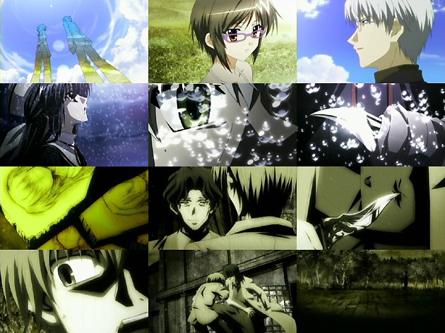 OPにもキャラが戻って来ていますが白黒のままで色が無く、まだ鬱展開が続く事を暗示しています。