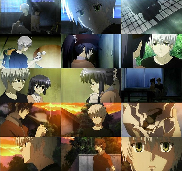 火村は強引に優子を誘って街を出る事を決意。戦う事よりも逃げる事を選びましたか・・・。この選択が今回のキーだったりしますが。 OPは色が戻って来ましたが何とキャラが上下反転!むー、見づらい(^_^; 人知れぬ町へとやって来た2人。おぉっ!私服ポニーテール優子が可愛いかも♪ しかし身元も知れぬ若い2人がいきなり暮らして行ける程世間は甘くなく、暮らす場所を探すだけでも一苦労。止むを得ずホテルに泊まろうと提案する優子ですが、火村は余計な散財をしたくないと拒否。優子は性的な意味で(傷物の)自分に興味がないから火村はホテルに行きたがらない、と勘違いしたようですがw