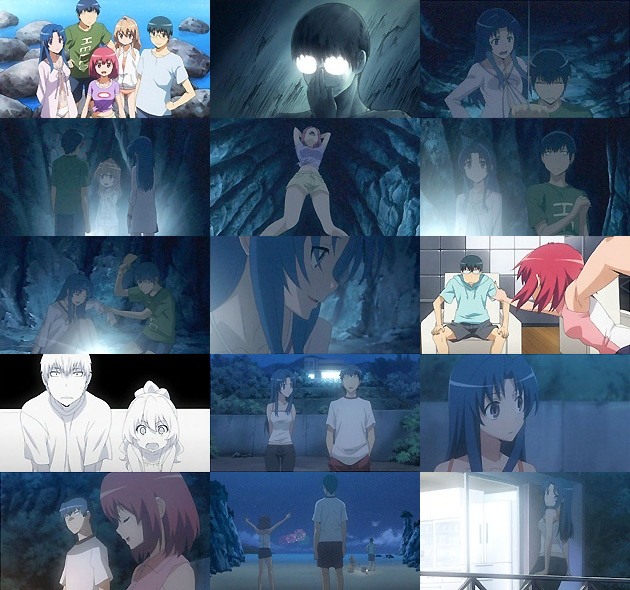 結局洞窟内のオカルト現象は、途中から竜児と大河が自分を驚かそうとしているのに気付いたみのりんと、その協力者たる北村の仕業。本当はオカルトが苦手なのではなく、そう装う事で皆がそういう話を振って来るのを楽しみにしていたみのりん。図らずも、先週ワタシが記した「みのりんはオカルト苦手なのかー。イメージ的にはそういうの大好きにしか見えないんだけどなぁ」が図星だったとはw