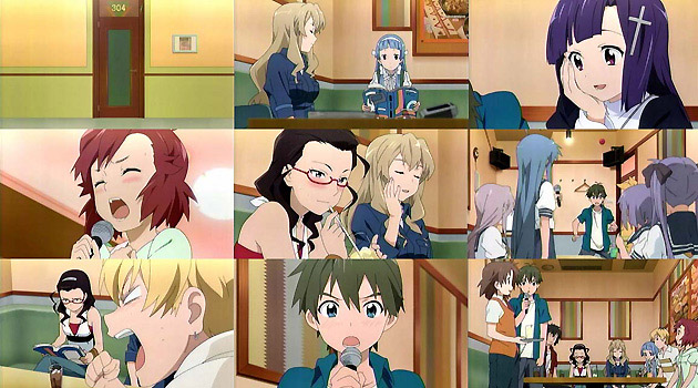 今回は終始いつもの面々によるカラオケボックス展開。つーか冒頭からキョーダインの歌って、これはどう考えても『らき☆すた』意識し過ぎwww とか思ってたら本当にこなたたちが出て来てチョココロネ盛大に吹いたwwwww ジャンケンで唄う順番を決めた面々。トップバッターはつぐみ。・・・正直ヘタクソ(^_^; それでも仁への想いを込めたラブソングを熱唱しましたが、仁はその間ずっと歌本とにらめっこ・・・いるいる、こういう奴!つーか俺!! 2番手は大鉄。バラードを切々と・・・つーかうめぇ!!何気に何でもこなす器用な男です。 続いては秋葉。バリバリのアニソンを期待していた貴子先輩ですが、意外にも普通の流行歌を入れた秋葉に貴子先輩ダメ出しw 結局秋葉は唄ったのは、15年前のOVAの挿入歌・・・つーか一般人とのカラオケでそれはダメだろ(^_^; いるいる、こういう奴!つーかこれも俺!!