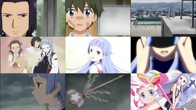 ナギの足を濡らす雫。直後に降り出した雨の描写を入れて視聴者には「あ、雨の雫か」と思わせておいて、直後に涙顔のナギを映す演出は本当に巧い。そして雨降る屋上に大幣だけ残っているカットで締める切なさ。これまでのアッパーな作品イメージから一気に鬱展開へ。ここからがスタッフの手腕の見せ所ですな。
