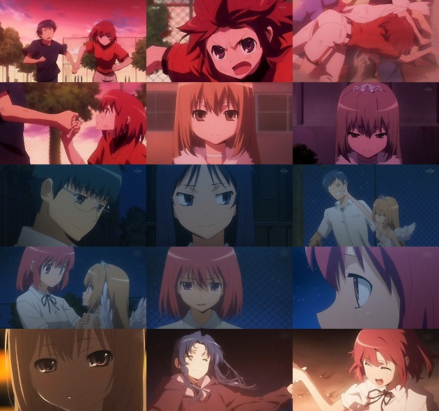 陸上部の連中の追撃を受ける竜児の下へ颯爽と現れるみのりん。フライングボディプレスで後続集団を叩き潰します。つーかみのりんの胸の下にいる奴は役得と言うべきか(^_^; 喧嘩中だったにも関わらず、竜児に大河を委ねたみのりん・・・なんて熱いヤツ。そして見事竜児がミスターコンテスト優勝。大河へのティアラ進呈は竜児とみのりんによって行われるのでした。そんな2人の熱い想いの前に、もう父親の事などどうでも良くなった大河の笑顔が素敵です。 クライマックスのフォークダンス。今回あまり出番の無かった北村・・・あれ?何か会長とちょっと良い雰囲気なのか? 大河とみのりんの友情は本当に素晴らしい。何でこの2人がここまで仲良くなったのか、きっかけをぜひ知りたいもんです。 実は1年前にも大河父の「同居するする詐欺」があった事を竜児に告げるみのりん・・・それもうちょっと早く言ってあげてればこんなにこじれなかったんじゃ(汗 最近ちょっとパワーが落ちて来たかな?と思っていた『とらドラ!』ですが、この見事な文化祭編の締めで再び高評価。やっぱ10月期作品ではこれがナンバーワンかな。1月からの2クール目もかなり期待出来そうです(OP/EDも次回から変わるみたいですね)。
