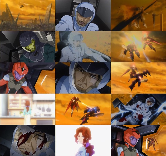 そして・・・最悪の事態だけは避けられたものの、多くの市民を犠牲にした(万単位で死んでるよな、やっぱ)自らの軽挙に愕然とするハーキュリー。そこにビーム一閃、ハーキュリー機はコクピットを撃ち抜かれます。撃ったのはアンドレイ!この事態の首謀者としてハーキュリーを撃ち、その協力者(と勘違いしている)自らの父・セルゲイに刃を向けるのでした。同程度の機体ならばセルゲイほどの名パイロットがアンドレイごときに遅れを取る事は無かったと思いますが、この時セルゲイが乗っていたのは旧世代機のティエレンタオツー。アンドレイのジンクスVの攻撃は、セルゲイ機のコクピットを貫き・・・ セルゲイの最期の言葉、それはアンドレイへの侘びでした。最後まで自分の事ではなく、他人の事を思って散って行ったセルゲイ大佐。GNアーチャーで初陣を飾ったマリーの悲鳴が戦場に響き渡り・・・