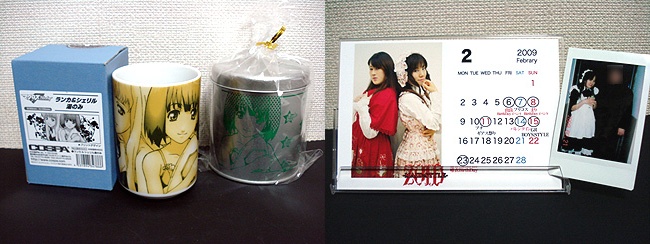 今日の購入物その1。キュアメイドカフェで食した飲茶セットに付属のランカ&シェリル湯呑み、そして土産で勝ったクッキー入りランカ缶@¥1,050。缶の中にはクッキーが7枚・・・超高級クッキーですな(^_^; メイドバーのZOIDではZOID謹製卓上カレンダー。2月はメイド長のまり嬢とバーテンの唯衣嬢のツートップによるフリフリ衣装が可愛えぇ♥( ̄▽ ̄)ノ Februaryの綴りが間違っているのもご愛嬌だ!w あ、あとまたポイントカードがMAXになったので唯衣嬢とツーショットチェキ。他のメイドさんとはもはや撮れない空気になってるんだよなぁ(^_^;