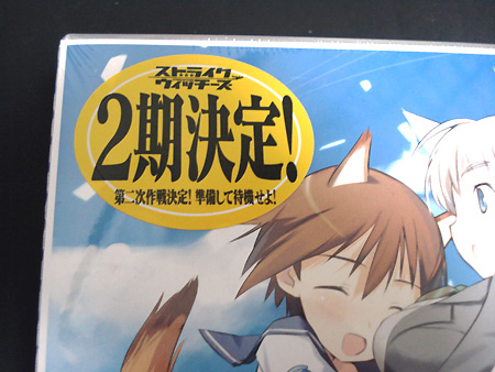 で、本日のメインディッシュ・ストライクウィッチーズDVD6巻。ジャケットにデカデカと「2期決定!」のラベルが。このニュースって確か世間に出回ったのって昨日でしたよね。しかしこのシールを作った印刷屋・張った内職屋・流通業者とかは既に見ていたはず。それでもここまで情報の隠匿が出来ているってのは、日本企業のモラルの高さってもんでしょうな。ちなみに劇場版エヴァの公開日が当初の9月から6月27日に早まったのも、ムービックと付き合いのある我が社では早い段階で知っていたものの、さすがにこれは緘口令を言い渡されまして、ワタシもここで言えなかったという(^_^; 話を戻して、今回の限定版DVDは秘め声CDの他にキャラステッカー4種・資料集・そしてタロットカードケースが付属します。タロットカードケースは他にも流用出来そうな感じですね。