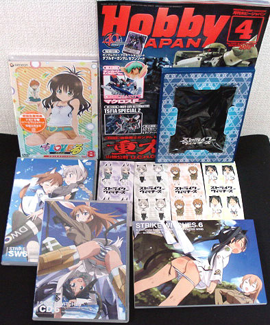 今日の買い物はこんな感じ。メインは『ストライクウィッチーズ』DVD6巻(最終巻)と『To LOVEる-とらぶる-』DVD8巻。それにホビージャパンの4月号です。 ホビージャパンは誌上限定通販のエクセレントモデル・ランカ・リー狙いで買いました。しかし1,000体限定かぁ・・・競争率高いです(;´д`) 運良く当たったら早速転売(コラ! じゃなくて、中年独特のいやらしい視線でじっくりねっとり視姦したいと思います(キモッ☆) しかしこの白ビキニは、どう見ても下着にしか見えんよw 『To LOVEる-とらぶる-』のDVD8巻は、お待ちかねの美柑たん表紙キタコレ♪ でも裏ジャケットは全然エロくなくて(´・ω・`) ショボーン