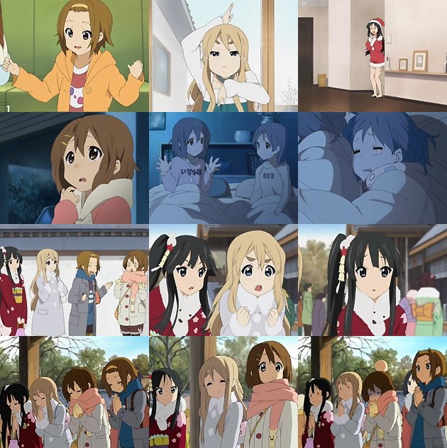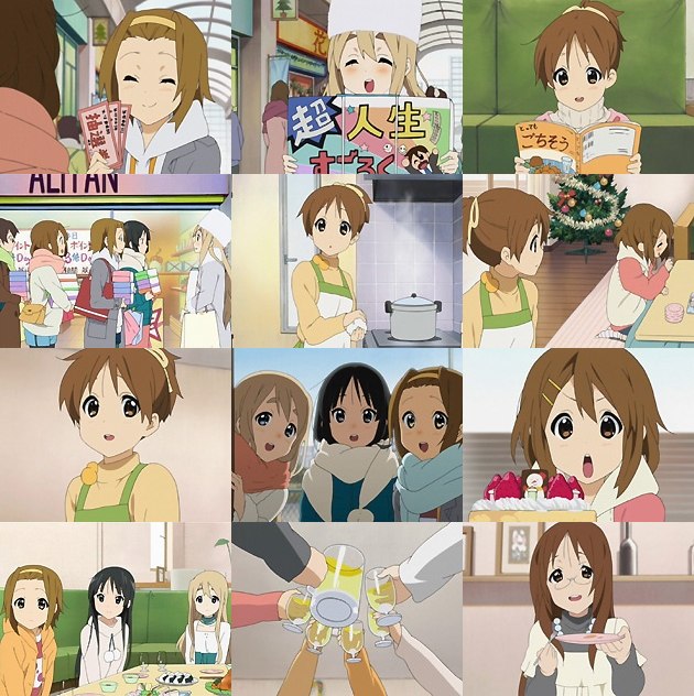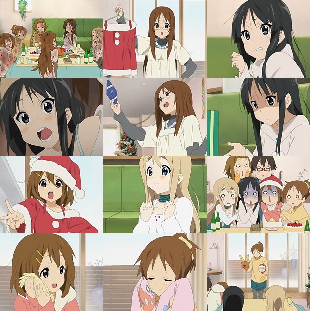 今回の主役は憂。誰が何と言おうとも。 幼き日の記憶。クッションの綿を抜いてホワイトクリスマスを憂にプレゼントした唯。阿呆の娘ながら、その妹への愛情は確かなもの。つーかその変なシャツは子供の頃からかよw ちなみに今回確認出来たのは「おやつ」「おやすみ」「ミルクガール」「ポリスマン」「いなかの米」「としこし」。これまでの「ハネムーン」「ロマンス」「チャンピオン」「ラブハント」「チャレンジ」「オーシャン」から一気に倍増w ・・・近々コスパショップが商品化するに10万ジンバブエドル(安! ひとつのマフラーを巻いたり、手袋の無い手を握って温めたりとか、もうこれは仲の良い姉妹を通り越して、ガチ百合姉妹。絶対ロザリオ渡したりしてるよ! 律の発案でクリスマス会を行う事になる軽音部の面々。勝手に会場をムギの家にしてますが、当日ムギの家を使うのは難しいようで・・・ムギはこういう時にその存在感をアピールしとかいないと!金持ちキャラと百合好きしかPR要素が無いんだから!(酷