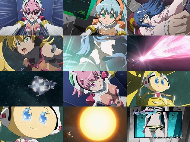 さらに月面基地を支配したウーレの連中によって、カークウッド宙域にいるクサンチッペ目掛けて反物質ミサイルが放たれます。反撃手段を失っているクサンチッペ。このままだとクサンチッペのみならず、コロニーの皆まで消滅の危機・・・その時、秋葉の箱をパージした脱出ポッドを操縦したイモちゃんがミサイルへと向かって行きます。って特攻!? 秋葉との楽しい思い出が走馬灯のように巡る中、イモちゃんはミサイルに体当たりし、宇宙の塵に( ´Д⊂ヽ