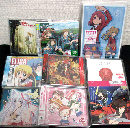 CDは8枚。『戦場のヴァルキュリア』OP&ED、『ハヤテのごとく!!』OP、『Phantom 〜Requiem for the Phantom〜』ED、『戦国BASARA』OP&ED、『咲-Saki-』ED、そして『タユタマ -Kiss on my Deity-』ED。またシングルだけで1万円コースですw
