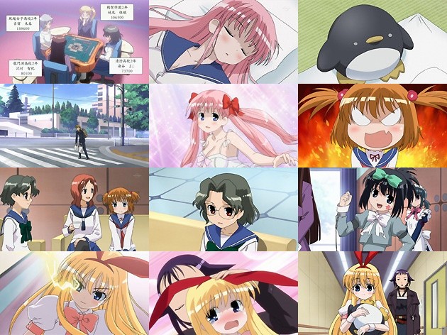 これで完全にツキを手に入れた妹尾。逆に自分が親の時に3度もツモ和了りされたまこさんは挽回のきっかけを掴めず、そのまま次鋒戦は終了(後半端折りやがった・・・)。首位は何とかみはるんが凌いで風越女子、2位に鶴賀が急浮上、3位にモンプチ、そして清澄は4位に転落してしまいます。 結論:眼鏡っ娘対決では眼鏡を取った人が負け( ̄人 ̄) その頃仮眠室では一戦終えた和と咲が眠りこけています(ぉ)。そこに偶然現れたのは、昨日の予選で敗れた名前も忘れた高校の噛ませ犬1号2号。負けた腹いせに和のペンギンさんを盗むという悪辣な事をしでかします。 京太郎の受難はさて置き(酷)、いよいよ中堅戦。その頃、ようやく会場に到着したモンプチの大将・天江衣。藤田プロに見付かって愛玩動物のように弄られますw しかしそこにさっきの噛ませ犬1号2号が現れ、ヤバいと思ってペンギンを捨てて逃走・・・それを拾った衣は、藤田プロに促されて和の元へ・・・。