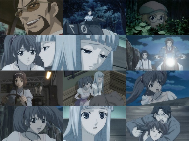 誘拐されてトラックの荷台で目を覚ましたアリシアは、となりにコーデリア姫がいるのを見てビックリ。しかしすぐ冷静に自分の仲間達が助けに来てくれる、と姫を励ましますが、姫は自分の無力さを嘆くばかりで、助かろうという気力すらありません。あぁ、声のせいもあってBASARAの市と被りまくる(^_^; そんな姫を一喝するアリシア。