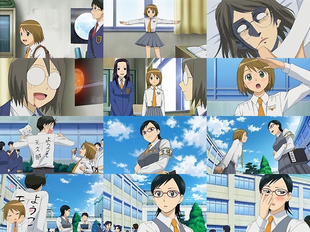 天文部はまだ発足したばかりで、部員を最低でもあと1人揃えないと部として承認されない、という事で必死に勧誘する美星たち。まぁOPに登場した髪の長い娘が入るんだろーなー、とは想像付きますが(^-^;