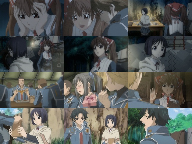 心にモヤモヤを残したまま作戦に参加するアリシアは、夜食のパンを焼く時に誤って火傷を負ってしまいます。その手を取ってすぐに冷水で冷やさせるファルディオ・・・もうさ、どう考えてもファルディオの方が機転も利く良いヤツじゃないですか。これでも落ちないアリシアさん、惚れた弱みってのは大きいのなぁ。 ファルディオから逃げるようにやって来た駐屯地でイサラが何かを準備しているのを知るアリシア。アリシアにだけそれを教えるイサラ・・・普段地味なイサラがさっきから目立っているだけで、何となくイヤなフラグの匂いがします・・・。 さて精霊節当日。ヤンさんはラルゴに豹柄のビキニパンツを・・・w そしてイーディーは隊内のM男君ことホーマーに何か渡しているようですが・・・この2人のフラグとか全然描いて来なかったからサッパリな展開(^_^; まぁS女とM男で良いカップルになるかもw 昨晩の火傷が嘘のように治っているアリシア・・・これも古代ヴァルキュリア人の血が成し得る業か。そしてラマールはイサラにネックレスをプレゼント♪やるじゃんラマールw でもイサラはラマールには何も用意してなかったようですwwwざまぁ(酷