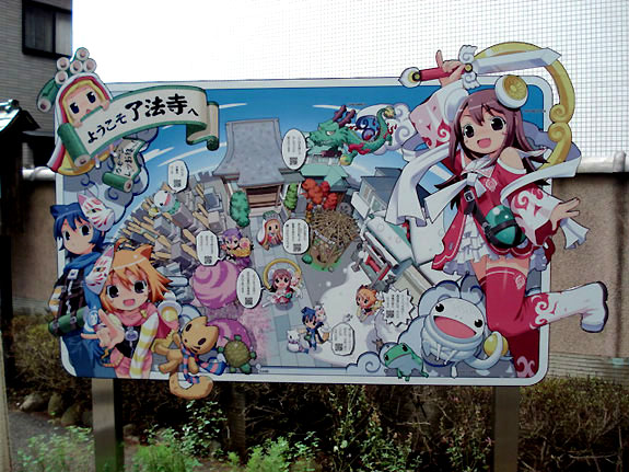 なんじゃこれは!の萌え看板wwwww(>ヮ<)ノ そうです、ここは先月ネットで話題になった、あの萌え寺院ですw