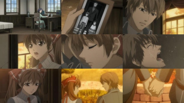 半年振りに自宅へ戻ったウェルキンは、荒れたイサラの部屋で家族の写真を見付けます。そこに現れたアリシアに「悲しいのに涙が出ないんだ」と初めてその心情を吐露します。 そんなウェルキンに「無理をする事はない」と言って優しく抱き寄せるアリシア。アリシアが部屋から出て行った後、その場で号泣するウェルキン・・・あぁ、やっとこれで胸に詰まっていた物が全て出せたかな。 庭で待っていたアリシア。この街を追われた時にコナユキソウの花に誓った思いを遂げる事が出来たアリシアとウェルキン。うん、もうこれで大丈夫かな。