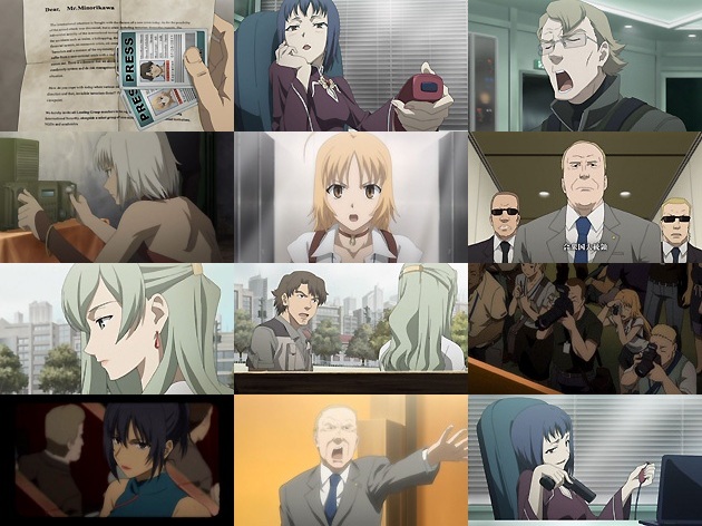 しかしみのさんはそちらはマリアに任せて、自分はハッコーに消えた村の住民に関しての取材。やはりハッコーもその村の住民だった・・・そしてハッコーもUAウィルスの保菌者で、彼女も体に特殊な異変が生じていました。それは声・・・普段喋らないハッコーですが、その声は生体兵器(声帯兵器?)となっていたのです。まぁ中の人の声はある意味、多くの男性の心を掴む武器になってますがw 会議の席上、「Love & Peace!」を声高に宣言する合衆国大統領。しかしその会場にはアルファルドの姿が・・・