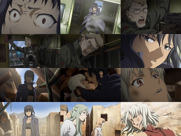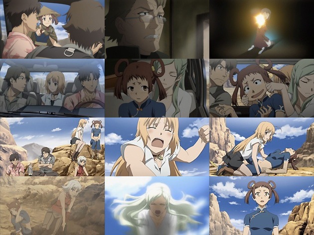 村に着いた一行、そこでサンタナによって語られる過去。彼は元CIAで、命令で知らない内に村にUAウィルスを撒く任務を請負い、直接手を下してしまい・・・事実を知った彼はCIAを去り、再び訪れたその村で夏目と出会い、以後CIAと手を組んでウィルス散布を利用して、殺人マシーンを作り上げた「蛇」に対抗して来たと。 その告白が終わるのを待っていたかのようにヘリが村にいるカナンたちを襲撃します。それを操縦しているのは・・・リャン・チー!「蛇」の後ろ盾が無い今、ヘリは強奪して来たものでしょうね。