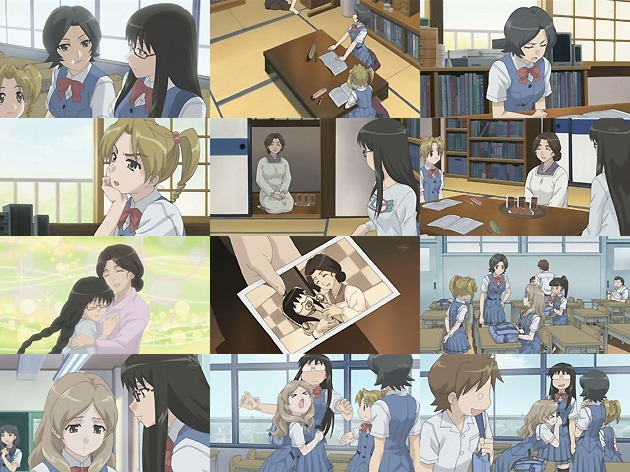 今後、栞がどのような形で物語に絡んでくるのか、まだ明かされませんね・・・。「11eyes」の1人ではなさそうですし。 考現学部の部室にいつの間にかたむろするようになっている駆たち。遂には田島も・・・と思ったら、お菓子に釣られただけでしたか。まぁどうせ仲間に入る事になるんでしょうけど、野郎のツンデレなんぞ観てても全然萌えないぞ。 そして遂に菊理が仲間に参入・・・名前と容姿が自殺した駆の姉と同じなのを、偶然の一言で納得して受け入れてしまうのはあまりにも安直ですなぁ。シャナの近衛史菜の前例もあるし。 で、雪子は早速乳揉みスキンシップ♪規制で見れないのはなぜ・・・パンチラOKで乳揉みNGの基準が良く分からんです。