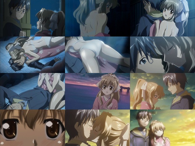 近くの小屋で晴れ着を直そうとする春香。さすがお嬢様、着付けは1人でも大丈夫なようです。しかし暗い小屋で1人になるのを怖がった春香は、裕人も小屋に連れ込み・・・もうヤる気満々ですな春香さんw 小屋の中にいた猫に驚いて下着姿のまま裕人に飛び付いた春香。さっきの甘酒の効果もあって体が火照ると言いながら裕人にその身を預け・・・♡ 裕人もここは男として春香を受け入れようとしますが、その時立てかけていた旗竿が倒れて来て裕人の頭を直撃。美夏たちの邪魔が無くても、結局何も出来ないんだなこの2人は(^_^; その後、ようやく黄瀬岬に辿り着いた2人。日の出の瞬間、春香は裕人に目を閉じてもらい、そして・・・ほっぺにキスってwwwww 駄目だこいつら何とかしないとwww 椎菜さん、これはまだまだ付け入る隙は有りそうですぞ!・・・そういや椎菜が引いたおみくじに「来週は急展開」ってあったけど、これって密かに予告だったのか??