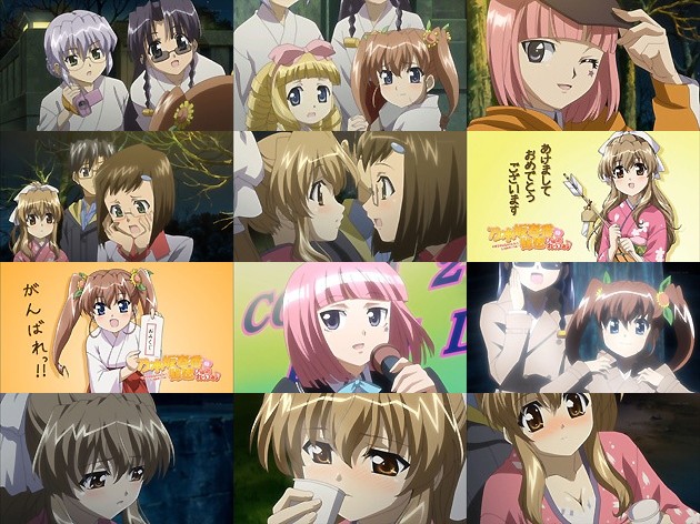 美夏たちは黄瀬岬に向かうであろう春香と裕人を引き続きストーキングしようとするも、大人気の巫女さんはギャラリーに囲まれて仕事から抜け出す事が出来ず・・・。 上手く2人きりになった春香と裕人ですが、そこに謎の女が現れます。彼女は年越しライブを抜け出してきたアイドルで(OPに出て来てますね)、その後マネージャーさんが探しに来ますが、このマネージャーさんが春香を一目見て気に入ってスカウトしようとします。うーん、これは後々の伏線になりそうな予感。 何とか巫女の仕事を抜け出してストーキングを再開しようとした美夏たちですが、その怪しげな様相から職質に遭い・・・これで今回は美夏たちの邪魔は入らなそうですね。 途中、体が冷えた春香と裕人は甘酒を一杯。これは見事な酔っ払いフラグw 案の定よろけた春香は、裕人に支えてもらった時に晴れ着が着崩れてしまい・・・
