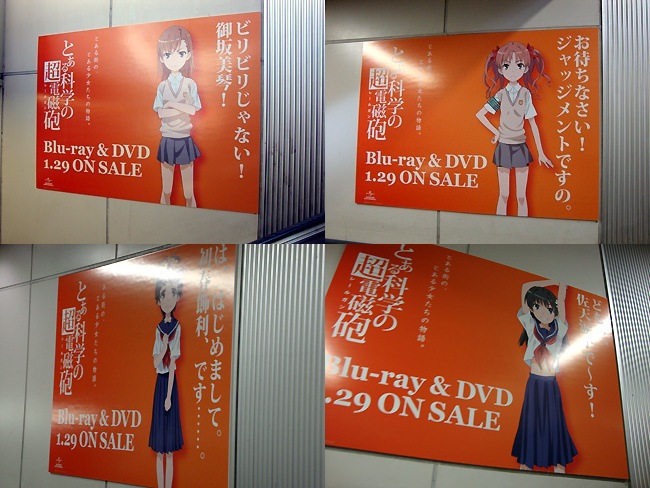 JR新宿駅に続き、現在JR秋葉原駅でも超電磁砲の期間限定告知キャンペーンやってます。場所は告示されず、JR秋葉原駅のどこか・・・という事でしたが、山手線/京浜東北線のホーム、御徒町駅寄りの改札へのエスカレータの壁沿いであっさり発見しました。ちなみにこの看板の対面には劇場版Fateの告知看板×4種も。いかにもアキバな通路になってますw