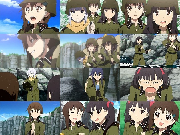 で、その重い荷物が・・・重過ぎじゃね?(^_^; 持ち上がらないんじゃ意味ないよw すっかり目が死んでるカナタたち、「ギブアップなら喇叭を吹け」と言われて出発前に喇叭を吹こうとしたり、「野生動物に遭遇して止むを得ない場合は発砲を許可する」と言われていきなり銃を抜こうとしたり・・・こらこら、誰に向かって撃つつもりだwww