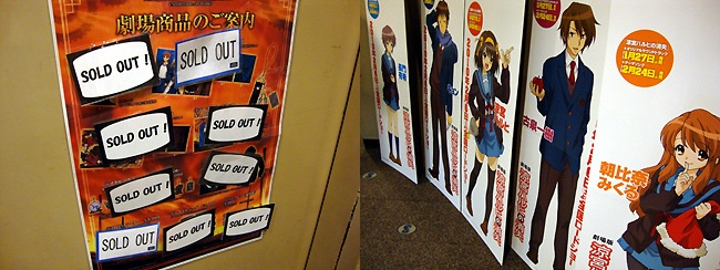 平日の真っ昼間、しかも上映開始から3週目にも関わらず、席は3割くらい埋まってましたね。アーチャー目当てと思われる女子の皆さんも結構いましたw 物販はパンフ以外全滅・・・同日上映開始の劇場版なのはばかりがクローズアップされてますが、こちらもなかなか盛況のようです。そしてこのパンフですが・・・印刷は当社でございます♪表紙にちょっと特殊な加工をしてまして、それなりに金かかってます。ご購入された方はじっくり見てやって下さい( ̄▽ ̄)ノ 劇場内は6日から上映の『涼宮ハルヒの消失』関連の宣伝アイテムがたくさん!まぁ当然これも今月中には観に行きますが。 あ、ちなみに昨年11月上映開始の劇場版マクロスFもまだやってました。何気にロングランだなぁ。
