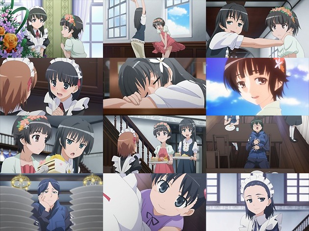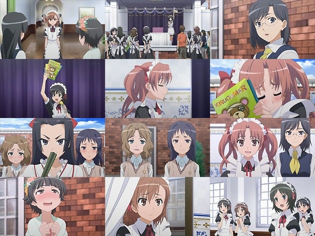 何やらアンニュイな気分のビリビリさん。今日は年に一度、常盤台中学女子寮が一般に開放され、寮生が招いたゲストの訪れる日――盛夏祭。つーか女子中学生寮を一般公開って、俺らみたいな人種以外の誰得って気がしなくもないですがw それにしても全ての寮生(=女子中学生)がメイド服姿でゲストをもてなすとは・・・どっかの学校で実際にこのイベントを取り入れませんか?日本全国どこだって飛んで行きますが♪ 勿論美琴もメイド服で接客・・・うはっ、これは可愛い(* ̄∇ ̄*) このコスでフィギュア出ないかしらん。そんな美琴を「運営側」という大義名分でパシャパシャ撮りまくる黒子。ムッツリーニも顔負けのローアングルでの接写も・・・美琴さん、貴方は僕らの夢を踏みにじった!!!( ノД`) おんや、超電磁砲では初登場になる土御門さんも登場ですか(常盤台の生徒にメイドのなんたるかをご教示しに来たようで)。土御門さんが黒子を拉致して行ってしまったために、黒子が招待した飾利&涙子は美琴が案内する事に。常盤台中に尋常じゃない憧れを持っている飾利は、これまでにないアグレッシヴさで会場内の制覇に燃えてます! 砂糖細工の花に刺繍の展示・実演ですか・・・そういや常盤台中ってお嬢様学校だってのをすっかり忘れてました(だって普段は美琴と黒子しか映らないしw)。