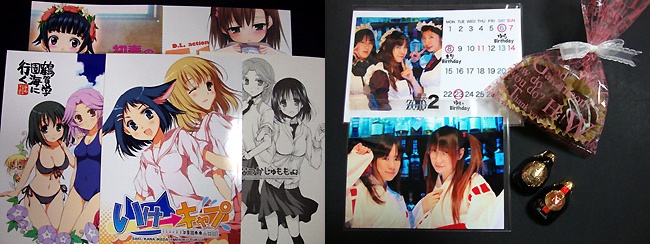 今日の入手物。同人誌5冊・・・18禁のは一応隠しておくw それと『ZOID』で2月のカレンダーと正月イベントで受け取り損ねていた巫女コス写真、そしてメイドさんたちからのチョコです( ̄▽ ̄)ノ 後輩君が次にゆっくり帰国出来るのはまた来年のこの時期・・・それまでしっかり、アキバの火をワタシが灯し続けて行かなければ!(キリッ